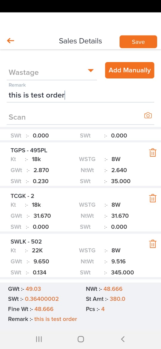 Manage Stock with product Catalogue- Karat, weight, item code, purity, Brand ,Jewel Type, Gender ,Wastage, etc.