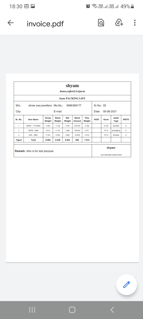 Generating Packing list/Invoices with variable type Like Item-Wise, Wastage Wise, Category Wise, Karat Wise, Jewel Type Wise